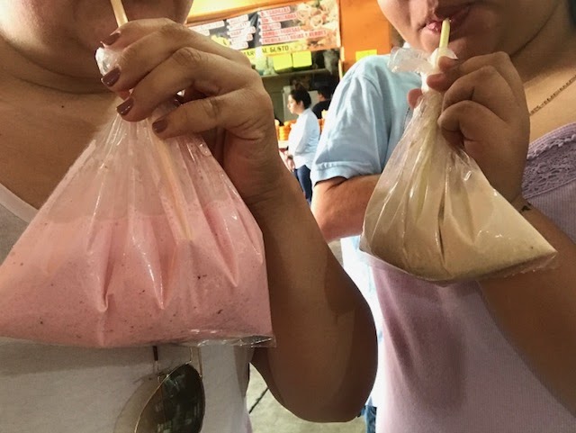 Every morning we spent in Tlaltenango, we walked to "El Mercado." At "The Mercado" we always got our licuados (The first 2 pictures) and tacos...now that's what I call a breakfast. I LOVE to drink my licuados in baggies, because it made me fit in and unique, isn't it? ANYWHO, At night time we ate dinner with my dad's cousins (3rd picture). My dad's cousin owned, a 'Licuado and Jugos' shop that is only open in the mornings and a 'Cenaduria' that opens at nights, Thursdays-Sundays. I looked forward to her smoothies and juices in the mornings & tacos for dinner! THANK YOU YOLAND! 😊